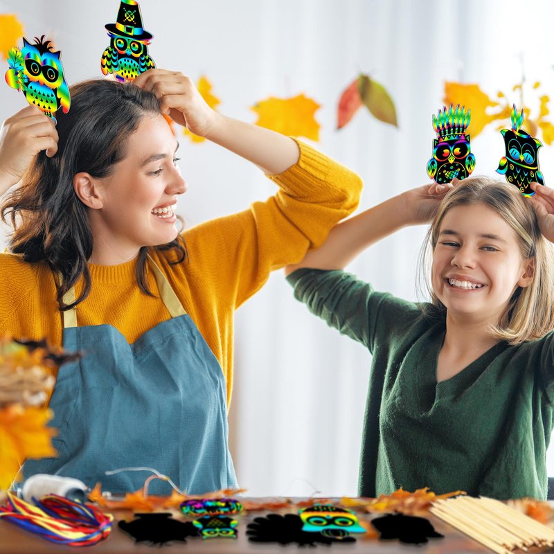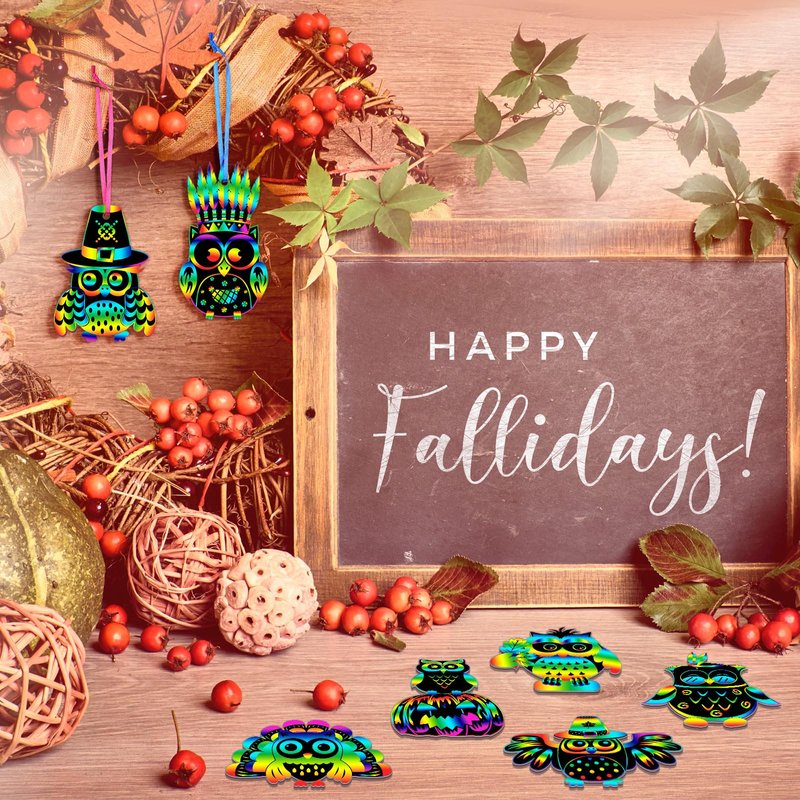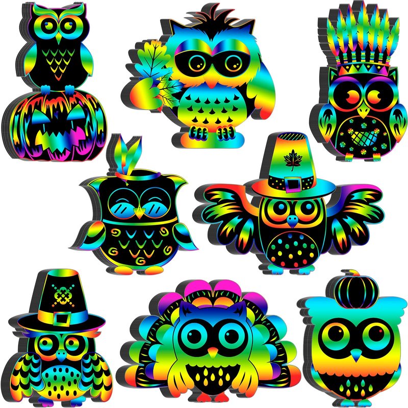 - Unique Designs: the art scratch paper designs come in 8 different owl shapes; These adorable and lively designs are appropriate for adults, teenagers, and children to enjoy at Thanksgiving parties; It encourages them to handcraft some delightful decorations themselves, bringing a joyous atmosphere and amplifying the fun at any gathering
