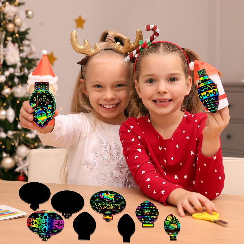 - Attractively Shaped Cards: our scratch cards come in various delightful light bulb styles; These cards afford everyone the pleasure to craft beautiful Christmas decorations while also exercising creativity, enhancing fun, and promoting color recognition