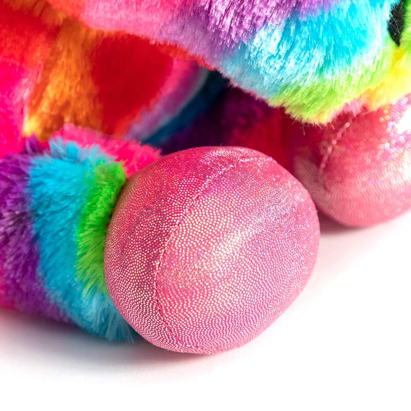 - Cute unicorn plush with super soft multicolored rainbow plush fur and sparkling horn and hooves