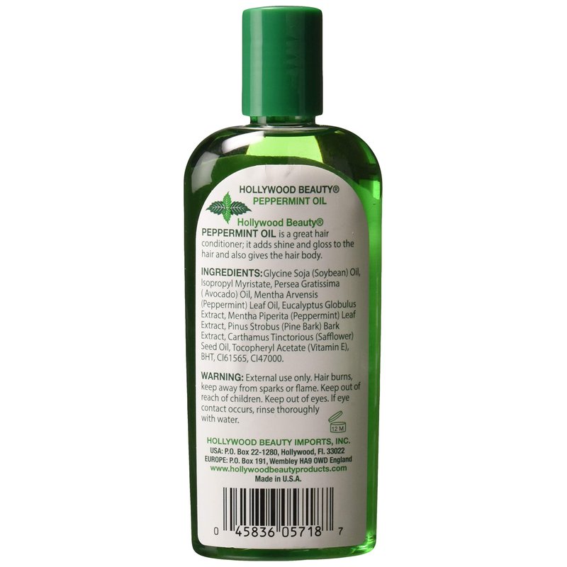 Hollywood Beauty Peppermint Hair Oil, 8oz Bottle, Conditions both hair and skin, Natural Treatment that Dries Itchy Scalps & Moisturizes Hair & Skin, Omega-3 Fatty Acids, Vitamin A & C