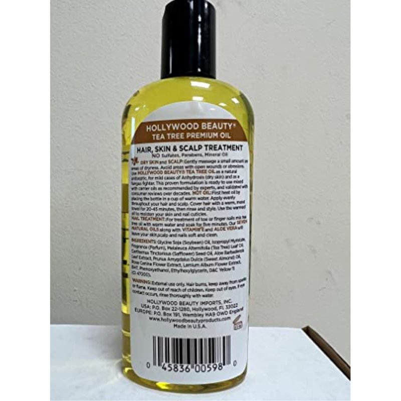 Hollywood Beauty Tea Tree Oil, 8oz Bottle, Hair, Skin & Scalp treatment, Moisturizes dry, itchy scalp, Hair Hot Oil Treatment, Vitamin E & Aloe and a Fungus Fighter