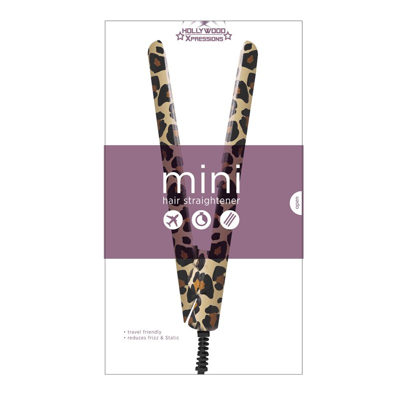 Hollywood Xpressions Mini Flat Iron Hair Straightener for Woman, Small Hair Straighter, 60 Second Quick Heat Up, Ceramic Heated Plates, Perfect for Bangs & Short Hair, Great for Travel (Leopard Print)