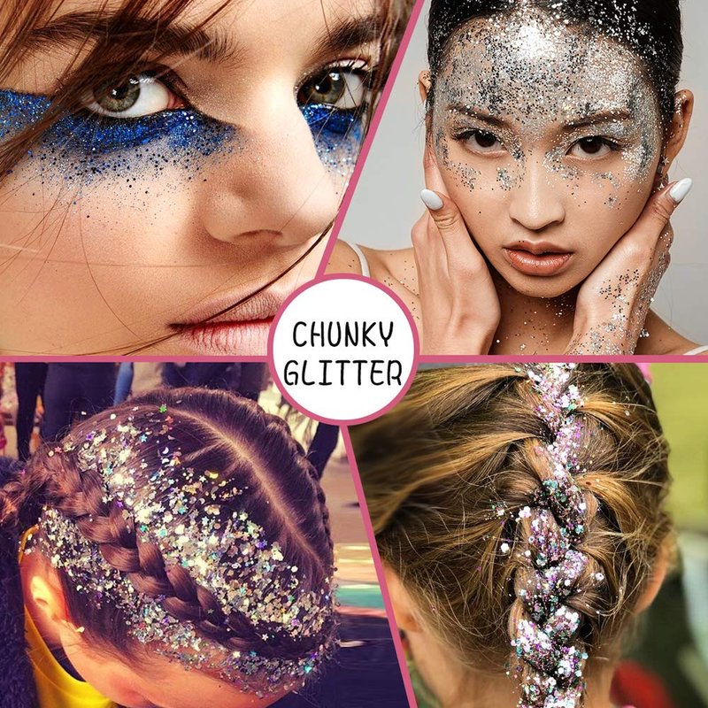 - 🌟Different Events: Suitable for festival party, night out and daily use. Bling-bling on face, eye, hair, body and nail. Our chunky holographic glitter will make you be the eye-catcher in every occasion.