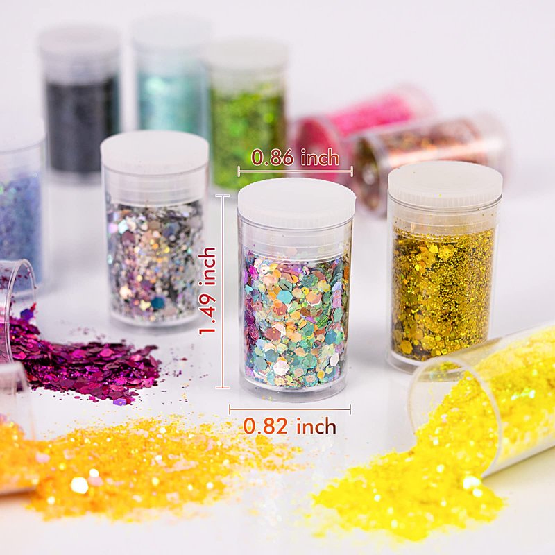 - 🌟Widely Use: Perfect for nail arts, body decoration, face painting, lip gloss glitter makeup, crafting, tumbler making, key-chains, bath bombs, Christmas decorations, great to use with epoxy resin and so much more.