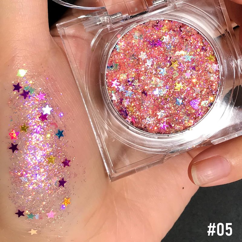 - Holographic Glitter Gel : Our holographic body glitter are rich in many color ,#5 light pink gold . The color and shine of the laser sequins vary with the perspective,like a rainbow ,make you be the most attractive at the stage. Fun and bright glitter gel made in multiple shades of color. Body, face, cheek, cheekbone,temples,beautiful once applied.