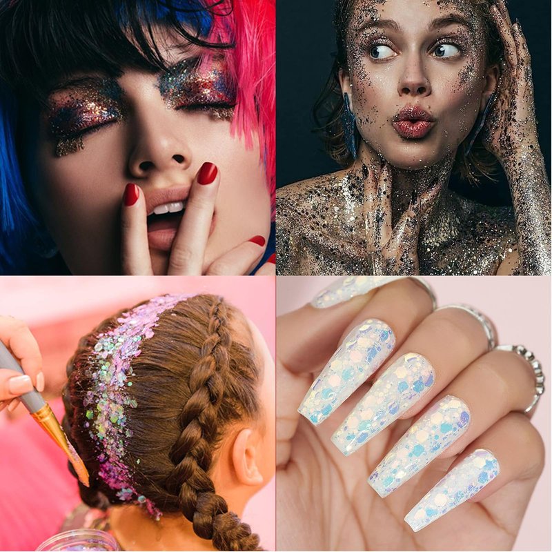 Each chunky glitter box has hexagon sequins mixed with super fine glitter powder, the nail glitter is super shiny as holographic effect and great color, achieve ideal mixture of chunky glitter and fine glitters
