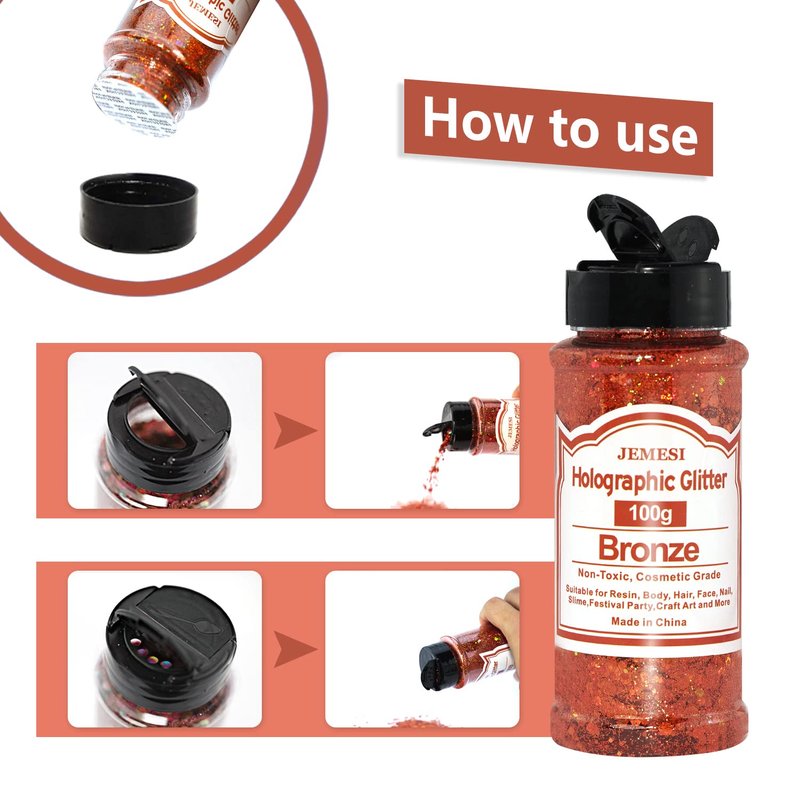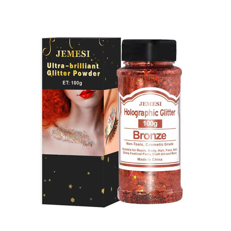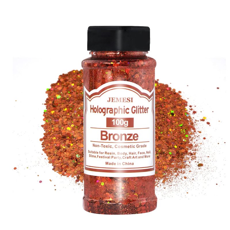 Holographic Chunky Glitter, 100g Bronze Cosmetic Craft Glitter for Epoxy Resin, Nail Sequins Iridescent Flakes, Body, Face, Hair, Nail, Glitter Slime Making