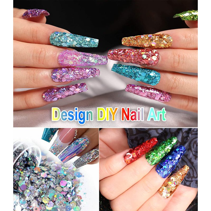 - ✅ Unlimited Creativity: Those glitters are super creative for DIY lovers. You can use the chunky glitter to decorate any art craft you like, like making resin jewelry, epoxy tumbler, slime, cell phone's case, nail arts, eye makeup, body arts, holiday decorations, dancing decorations, and more.