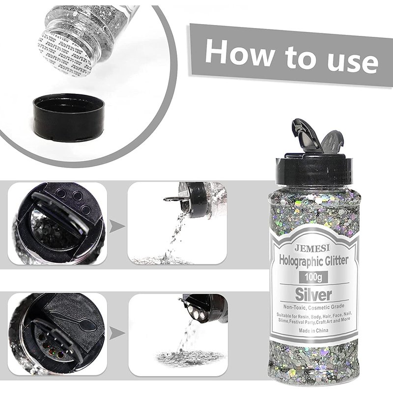 - ✅ Easy to Use: 100-gram bottle features a user-friendly shaker cap that allows you easy to control the placing and the flow of the glitter applied to your craft project. No trouble, no waste. Perfect for DIY lovers and beginners, a Make-up brush or fingers can easily use it.