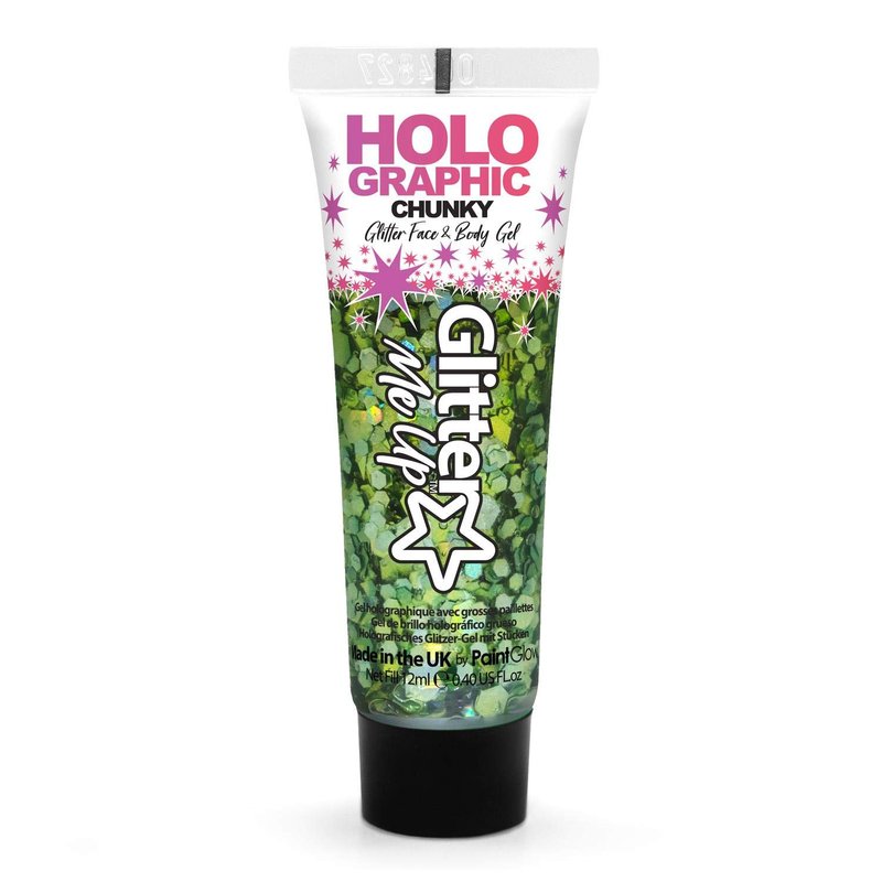 Holographic Chunky Glitter face and Body gels 12ml by PaintGlow – Vegan Cosmetic face Glitter, Body Glitter, Hair Glitter, pre-Mixed in fix Gel, Glitter face Gel, Body Glitter gels (Green Envy)