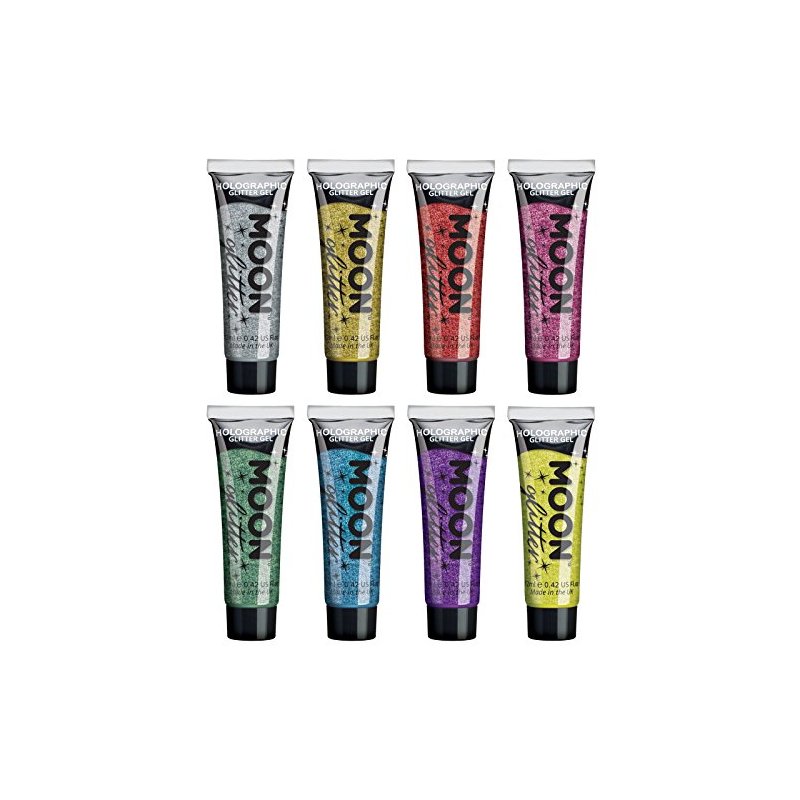 Holographic Face & Body Glitter Gel by Moon Glitter - 0.40fl oz - Set of 8 colours - Glitter Face Paint