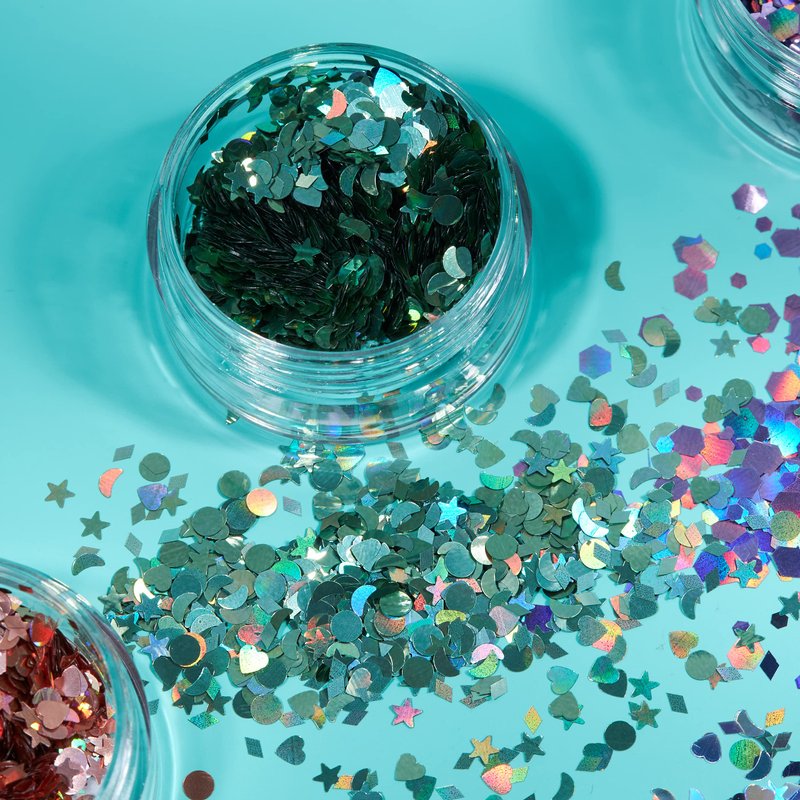 Holographic Glitter Shapes by Moon Glitter – 100% Cosmetic Glitter for Face, Body, Nails, Hair and Lips - 0.10oz - Set of 5 colours