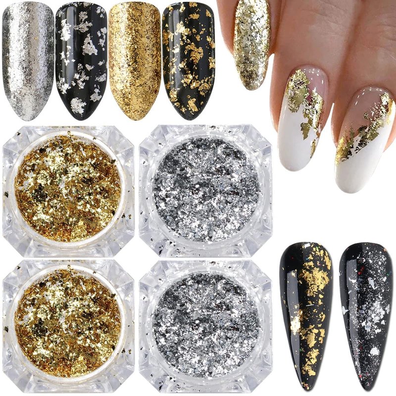 - Easy to Use: Suitable for professionals or beginners. gold nail glitter flakes perfect for natural or artificial nails. And can be combined with all UV gel nail polish, DIP powder, and all nail powder.