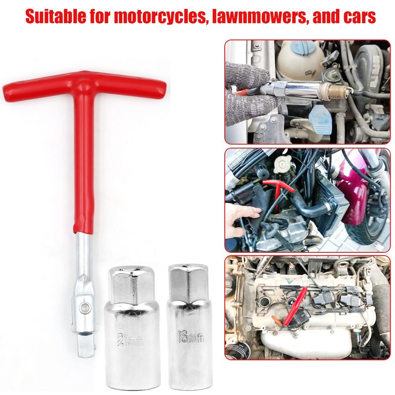 Holoras T-Handle Universal Joint Spark Plug Socket Wrench, 16mm 21mm Socket (Red)
