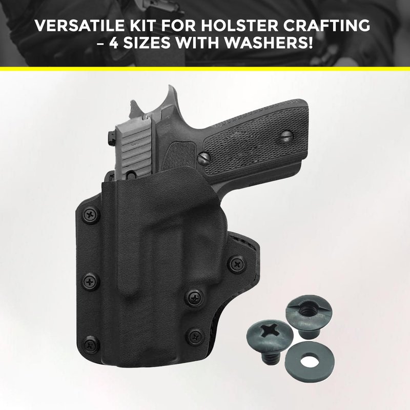 Holsterbuilder Premium Chicago Screws Kit - 1/8, 1/4, 3/8, 1/2 Inch Thru-Hole Machine Screw Fasteners with Rubber Washers for Kydex and Leather Holster Sheath Crafting
