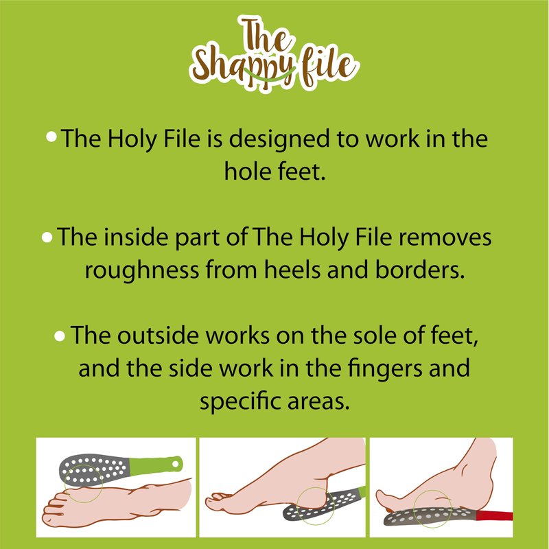 The Holy Coarse File easily removes callus, dead skin as well as smooths feet. The Unique design with a double sided surface allows it to work around the contours and round areas and the sole of the feet. The Holy Coarse Foot File can be use wet or dry, and is a great retail item due to the easy use and the long lasting and quality results.