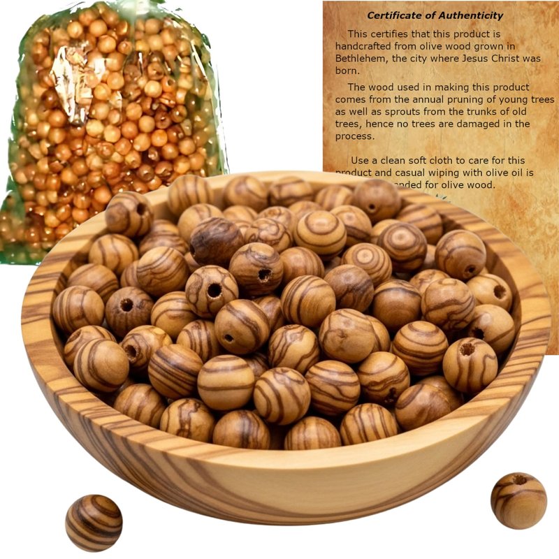 - CERTIFICATE INCLUDED: Comes with a Certificate of Authenticity, ensuring the genuine origin of these Bethlehem olive wood beads.
