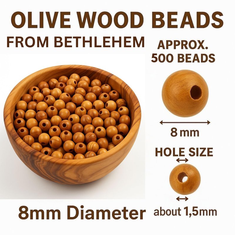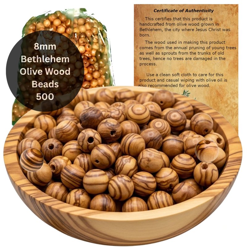 Holy Land Market Olive Wood Rosary Beads 8mm - 500 Beads, Handcrafted in Bethlehem, Prayer & Meditation, Olive Beads from Holy Land