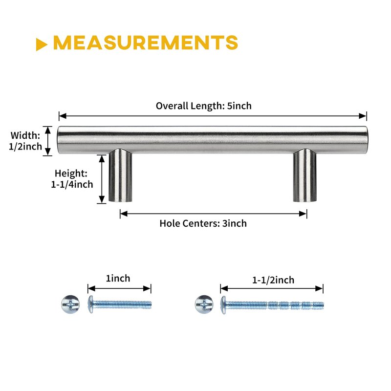 - Measurements: 3 inch Center to Center with 5 in Overall Length..Please measure your cabinet HOLE CENTERS is 3in before you purchase cabinet handles.