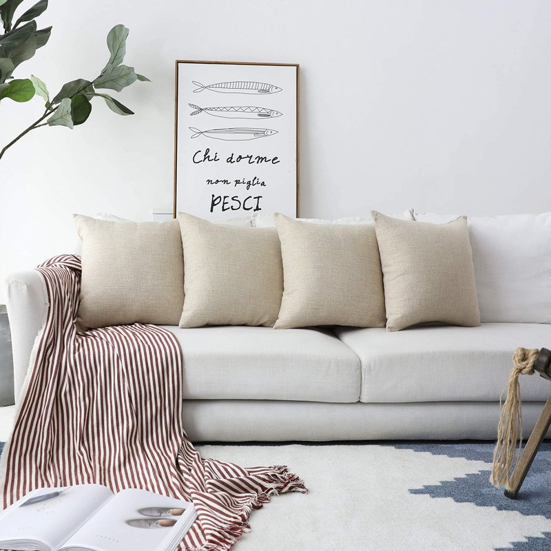 Home Brilliant Linen Throw Pillow Cover Burlap Square Cushion Cover Pillow Sham for Couch Living Room Fall Decor, Light Linen, 18x18 Inches(45cm)