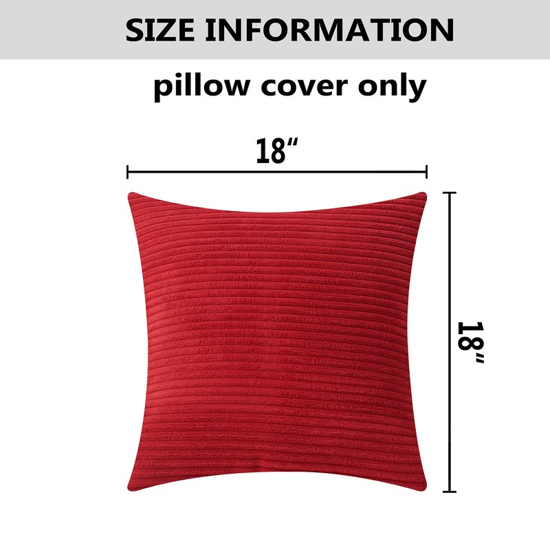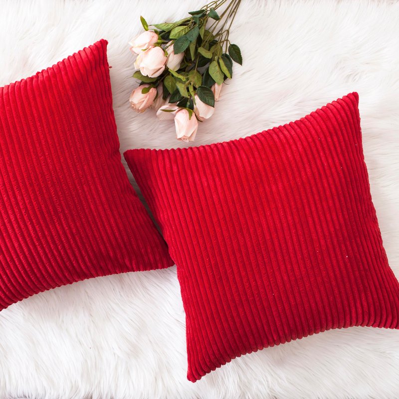 Home Brilliant Red Pillow Covers 18x18 Decorative Striped Velvet Corduroy Plush Throw Pillow Covers for Couch Holiday Wedding Decor, Set of 2, 18 x 18 inch, Red