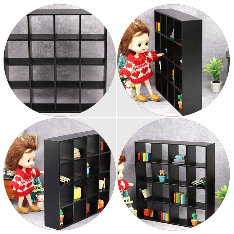 Home Decor Doll House Furniture Miniature Wooden Storage Rack 16 Grid Display Shelf Model Wooden Mini Doll House Furniture Accessories Decoration 1: 12 Storage Rack Locker Shelf