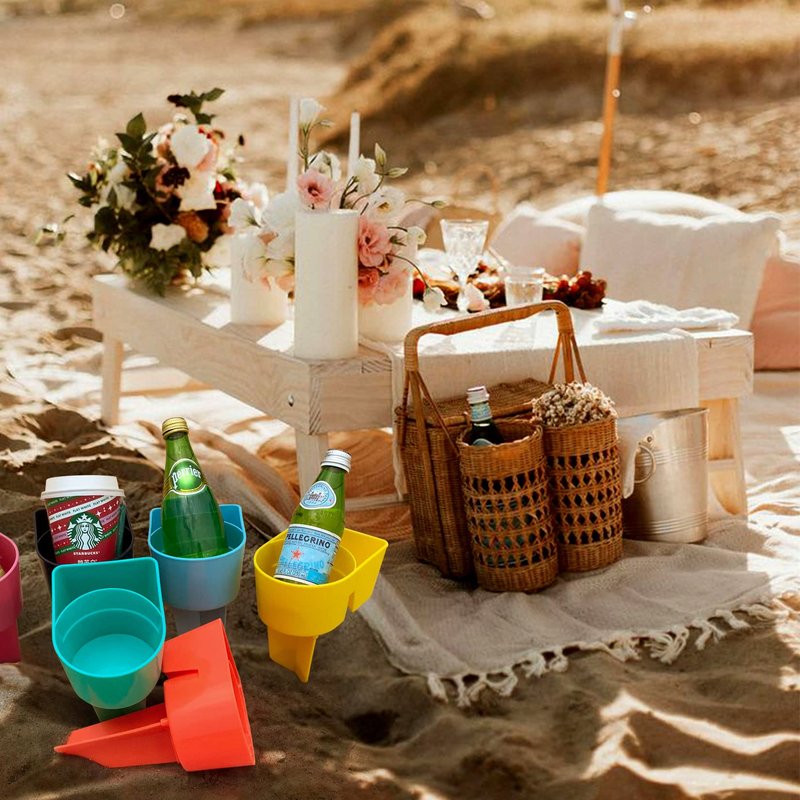 - Ideal Gift: Use it at the beach party, river or lake, can also used the sand cup holder to dredge the sand have a real fun. Works great for beach balls like volleyball, too. The beach plastic cups are perfect addition beach accessory for beach lovers, honeymoon couple, new graduates, college friends, fishermen, concert lovers, parents