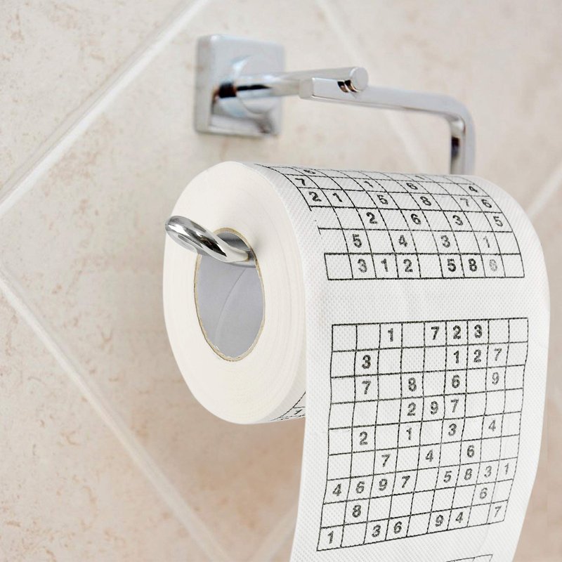 - PUZZLES IN THE BATHROOM: What better way to entertain guests and family members when in the throne, than with a roll of sudoku themed toilet paper in the place where they are sure to see it — the bathroom. Whether you’re a jokester or just love everything brainy, this entertaining toilet paper roll is just the thing you need.