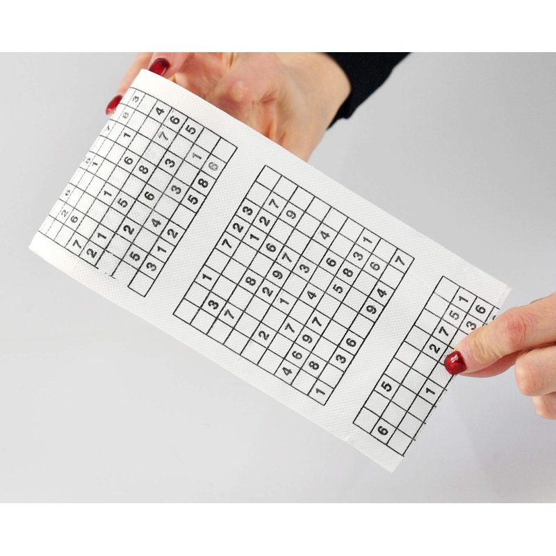 - BATHROOM BRAIN BOOSTER: If you are looking for a way to put your brain to work when duty calls, this durable roll of Sudoku Toilet paper is the way to go! Simply pull down the roll and start filling in the puzzles. It's so easy to play: complete the grid so that each row, each column and each 3 by 3 box contains the numbers 1 to 9 without repetition.