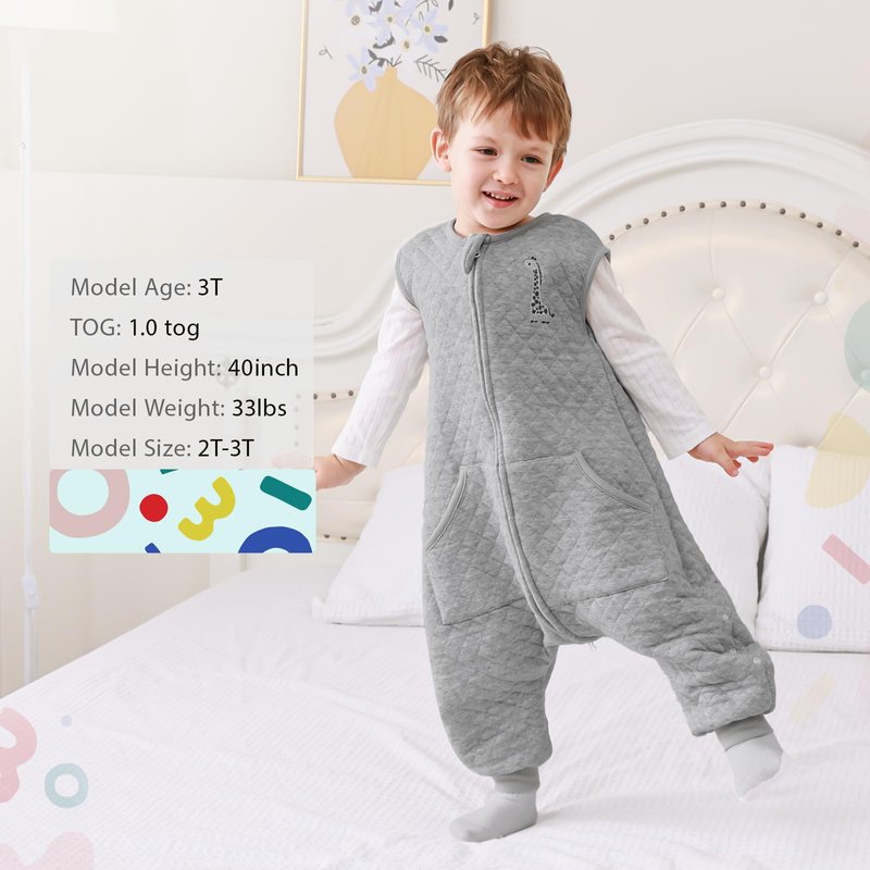 - Warm Sleep Sack: Our toddler sleep sack with legs is designed to replace loose blankets. With a 1.0 TOG thickness, this weighted sleep sack ensures warmth and comfort for all seasons, keeping your little one cozy throughout the night and promoting longer, better sleep.