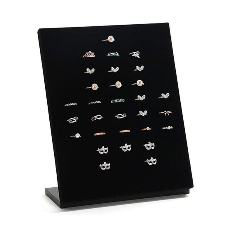 Homeanda Black Velvet L-Shaped 50 Slots Ring Earring Jewelry Display Tray Organizer Holder (L-Shaped 50 Slots-Black)