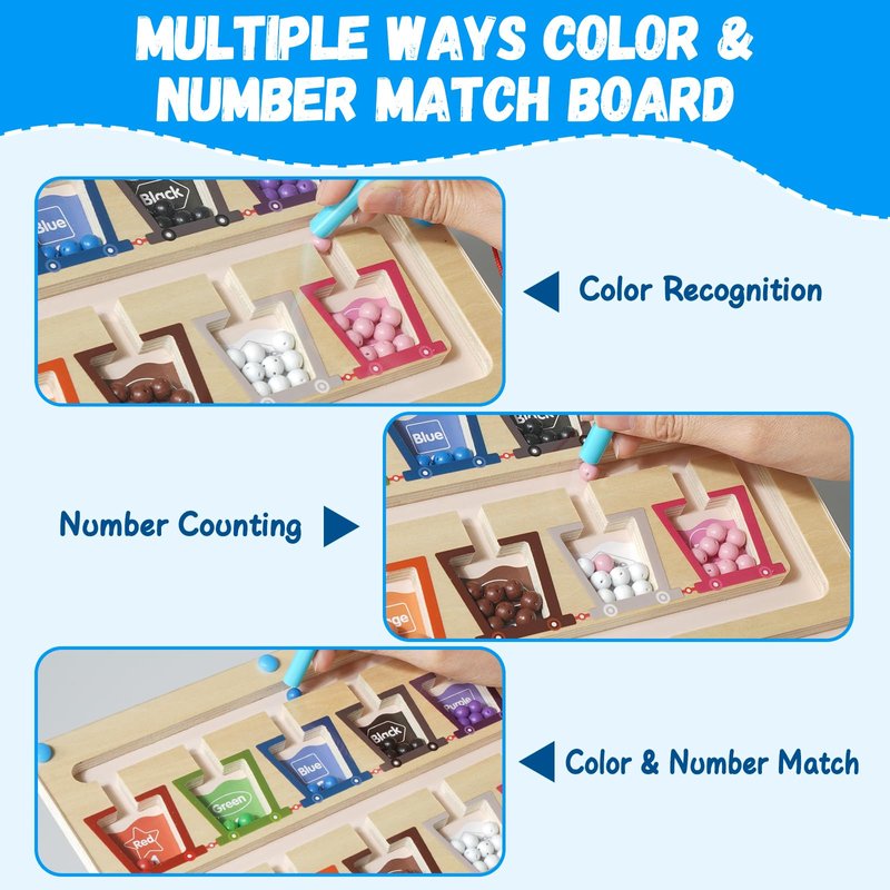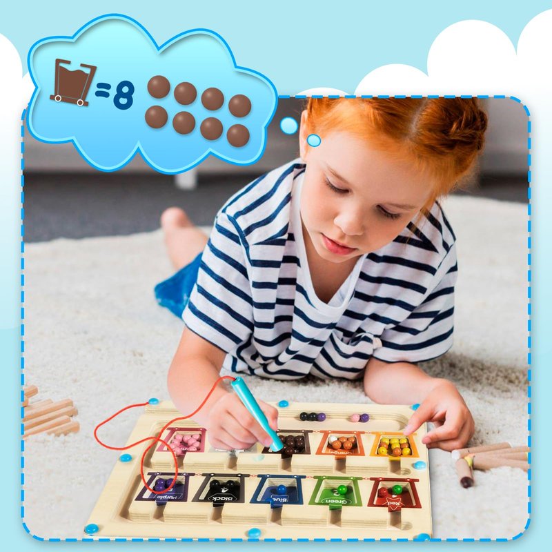 - 【Montessori Educational Toy, Magnetic Maze Board】 This learning magnetic color and number maze board can meet color classification needs. You can move colorful magnetic beads on the board to improve hand-eye coordination.This funny toy is suitable for leaning color, counting and improve fine motor skills, hand-eye coordination.