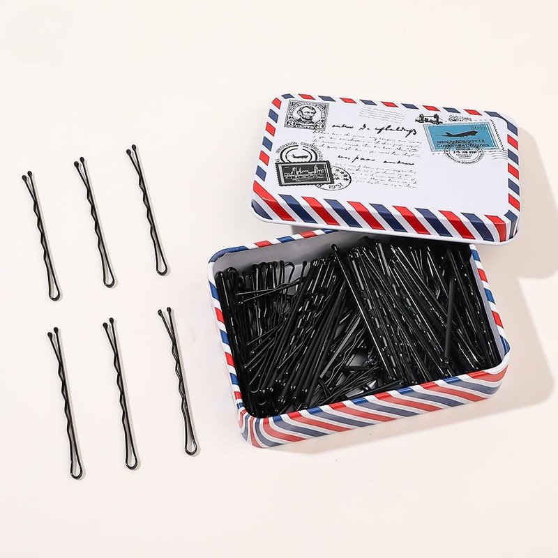 - 【Hair Pins Set】The package includes 100 pcs 2 Inches Black Hair Pins with postcard iron storage box .