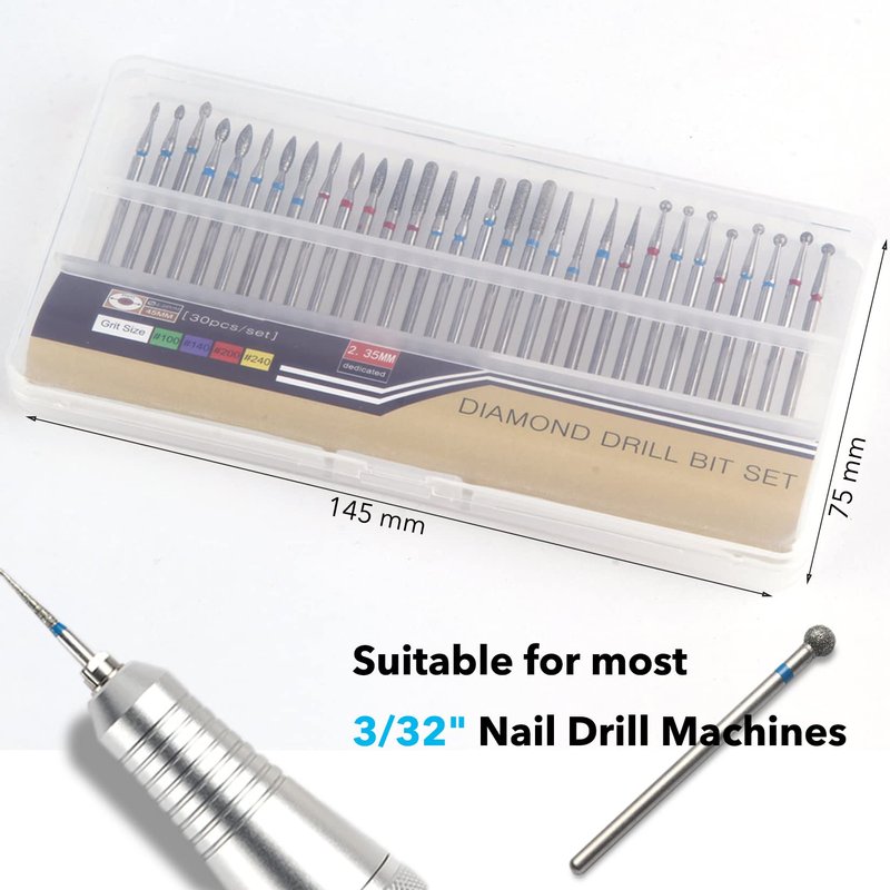 - 【30 Pcs Nail Drill Bit Set】Total 30 pieces different nail drill bits, suitable for most nail drill machines that use 3/32" bits, suitable for long time use. They can be used to polish the nail surface or even remove cuticles from edges and side walls and dead skin.