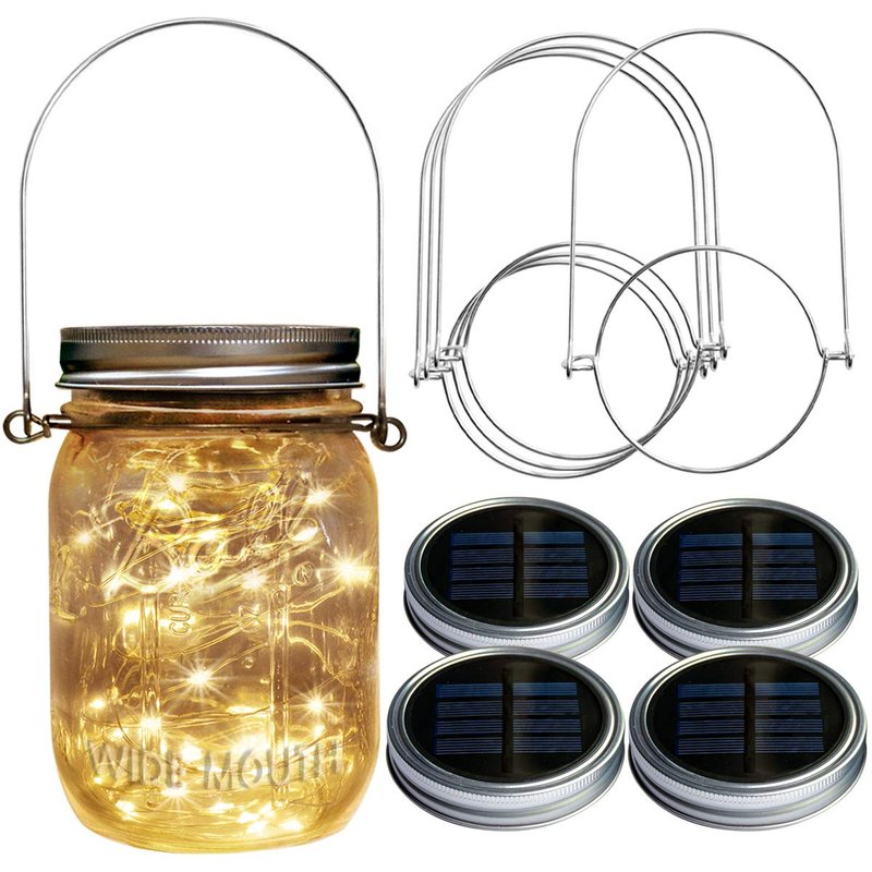 Homeleo 4 Pack Wide Mouth Mason Jar Solar Led Lights Insert Screw with Hangers, Warm White Waterproof Solar Fairy Lights for Outdoor Garden Decor Christmas Holiday Wedding Party(Jars Not Included)