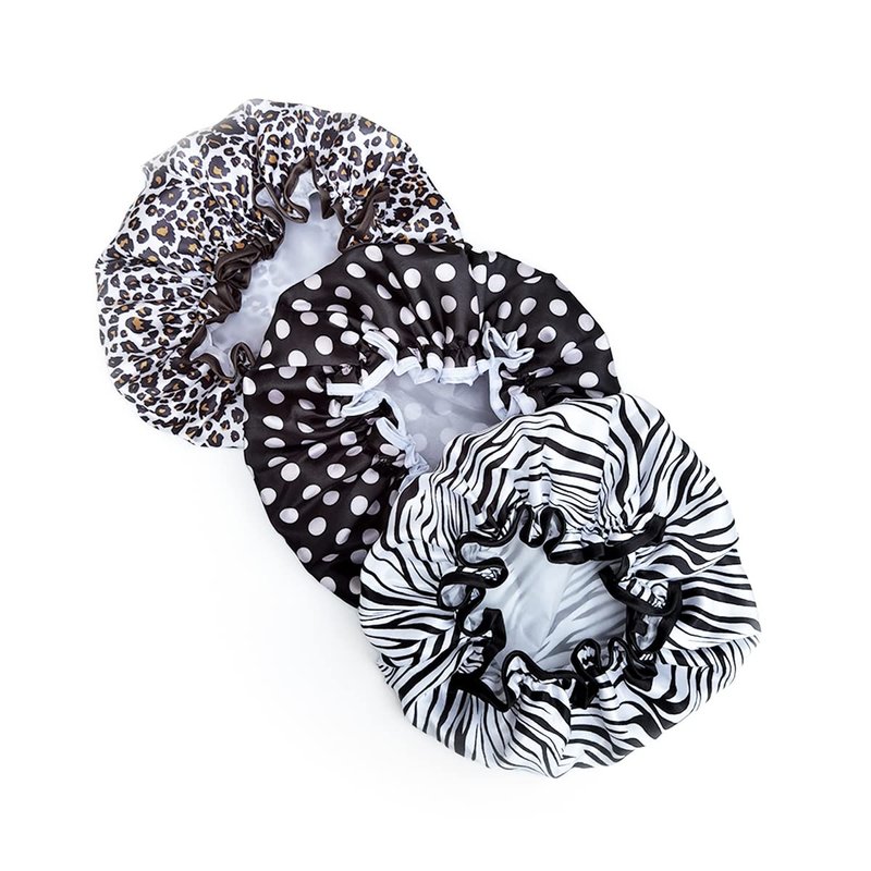 These shower caps are stylish and fashionable. Various shower caps give you more choice to enrich bathing. Please wash similar colors, wash inside out and do not tumble dry.