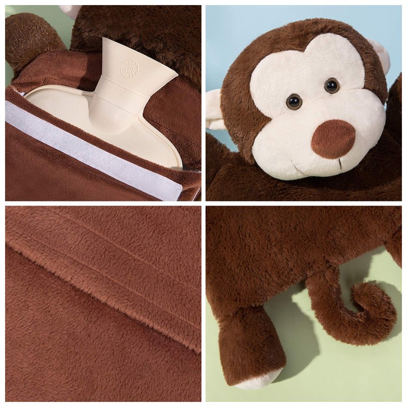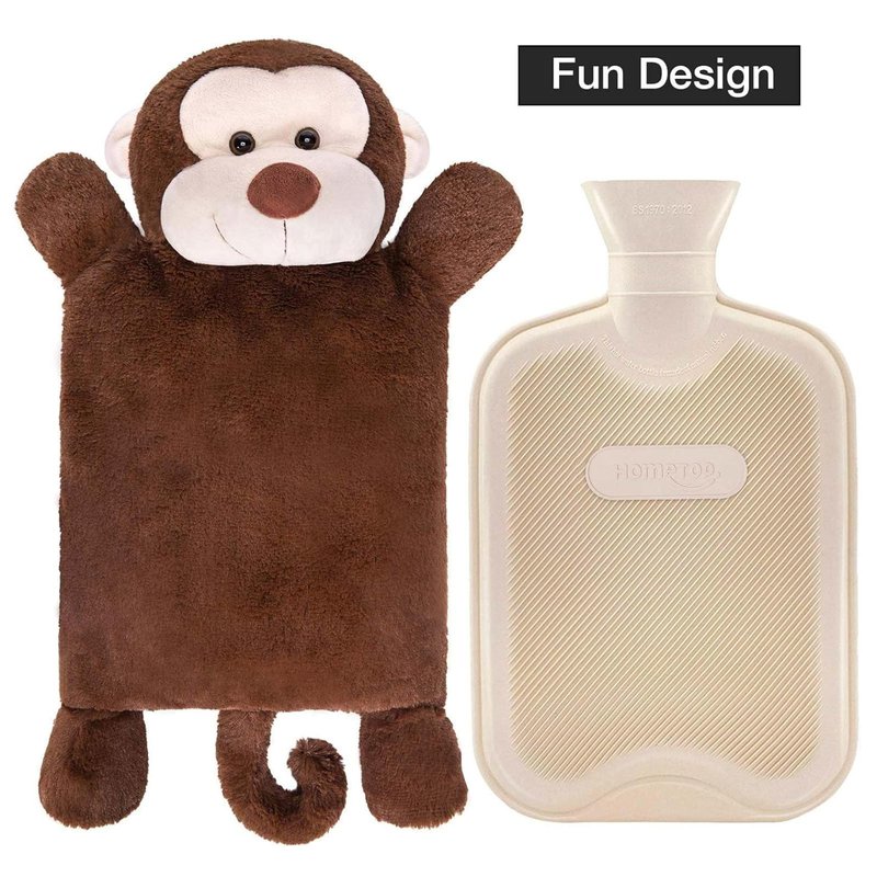 HomeTop Premium Classic Rubber Hot or Cold Water Bottle with Cute Stuffed Monkey Cover (2 Liters, Brown Monkey)