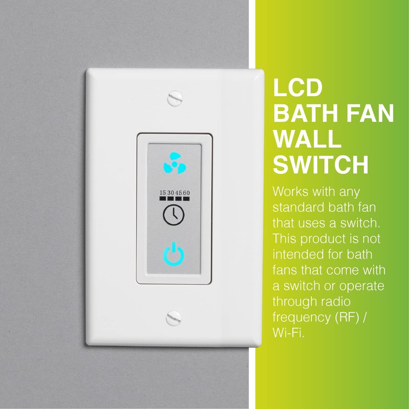 - OPERATION IS SIMPLE: Control the bath fan functions with the easy-view LCD buttons
