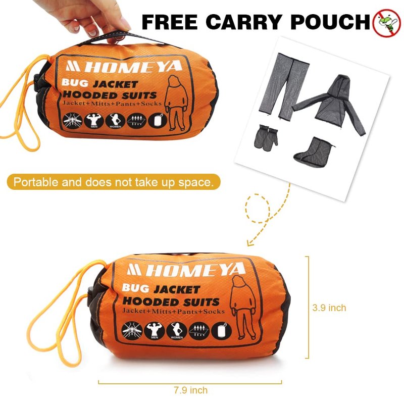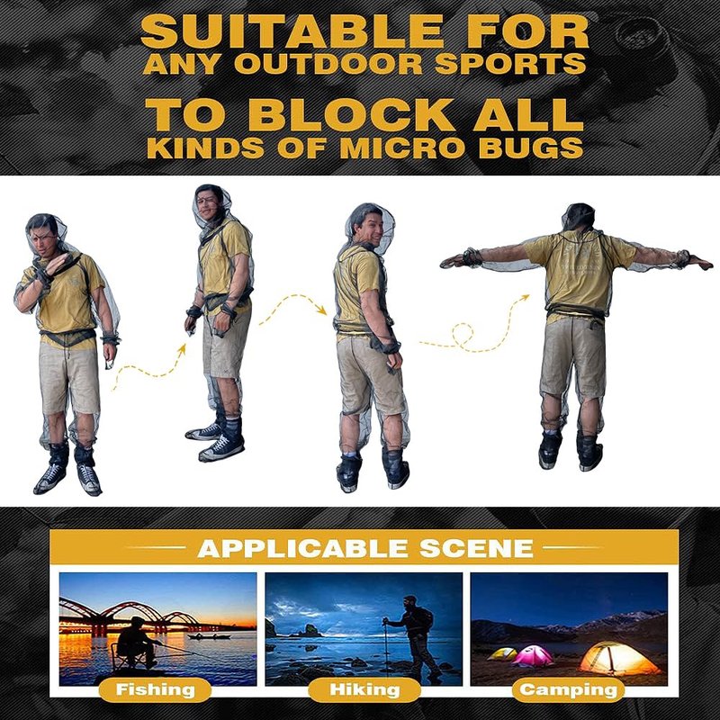 - 【Portable Carry Bag】Anti mosquito netting suits can be stored in a free carrying pouch. Save spaces during outdoor activities. Convenient to carry and store in backpack. Note: The mesh is not conducive to heat dissipation in hot environments.