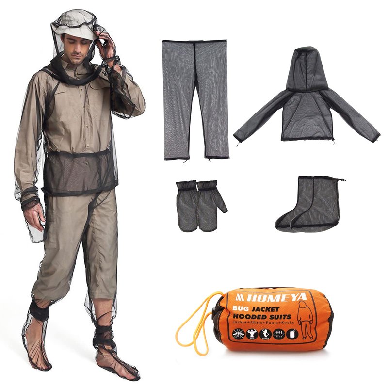 Perfect protection of the body by HOMEYA mosquito suit! Equipped with jacket, mitts, pants and socks. A perfect protection system for your outdoor activities.