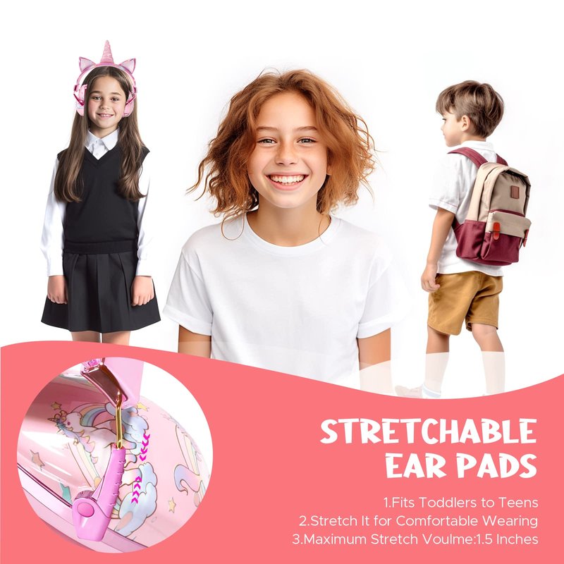 - [Secure and Stylish Fit]- The stretchable design of safety earmuffs ensures a secure and comfortable fit for kids aged 1 to 12 years old. These adorable kids noise cancelling headphones are designed with a 3D unicorn shape that is sure to captivate your child's attention. Protect your little one's sensitive ears while making a stylish personality with our unicorn earmuffs- - a must-have for any parent concerned about their child's hearing.