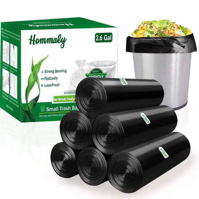 Introducing Hommaly's small black trash bags, the nice solution for your bathroom or office waste bin! Our strong black garbage bags come in a convenient pack of 240 pcs, making it easy to keep your space clean and tidy. These plastic bags are designed to fit 6-10 liter and mini waste baskets, with a 2.6 gallon capacity. Use them as bathroom trash can bin liners or for your office waste basket line. Our small trash bags are made to be durable and reliable, ensuring that your garbage stays contained and your space stays clean. With their sleek black color, these bags blend seamlessly into any environment. Our unscented trash bags are nice for those who are sensitive to strong smells. Whether you need small trash bags for your bathroom trash can or your office waste basket, Hommaly's got you covered. Order now and experience the convenience and quality of our small garbage bags for bathroom can and small trash bag products!