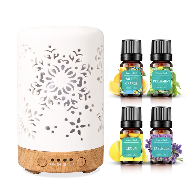HOMNAS Essential Oil Diffuser with Oils, 100ML Upgraded Ceramic Diffusers for Essential Oils, Ultrasonic Aromatherapy Oil Diffuser Humidifier with Lavender&Lemon Oils, Aromatherapy Humidifier for Home