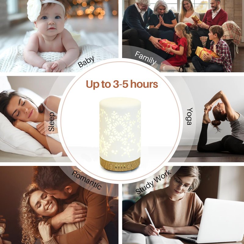 - Waterless Auto-Off: the auto shut-off function of the aromatherapy essential oil diffuser gives you peace of mind when using, as the diffuser will be shut-off automatically when water runs out.