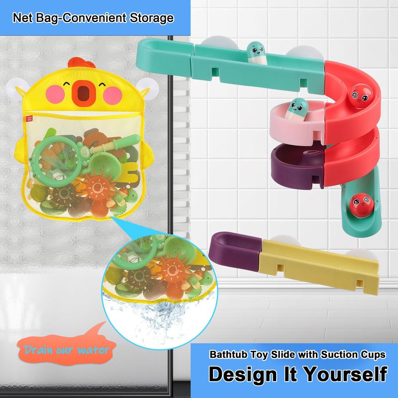- DIY STEM Toys: Our Shower Toys for Toddlers 2-4 are not only fun but also educational. Easy to take apart and rearrange, this versatile bath toy enables kids to build various water slide configurations for endless delight, helping them hone their fine motor skills and practical abilities.