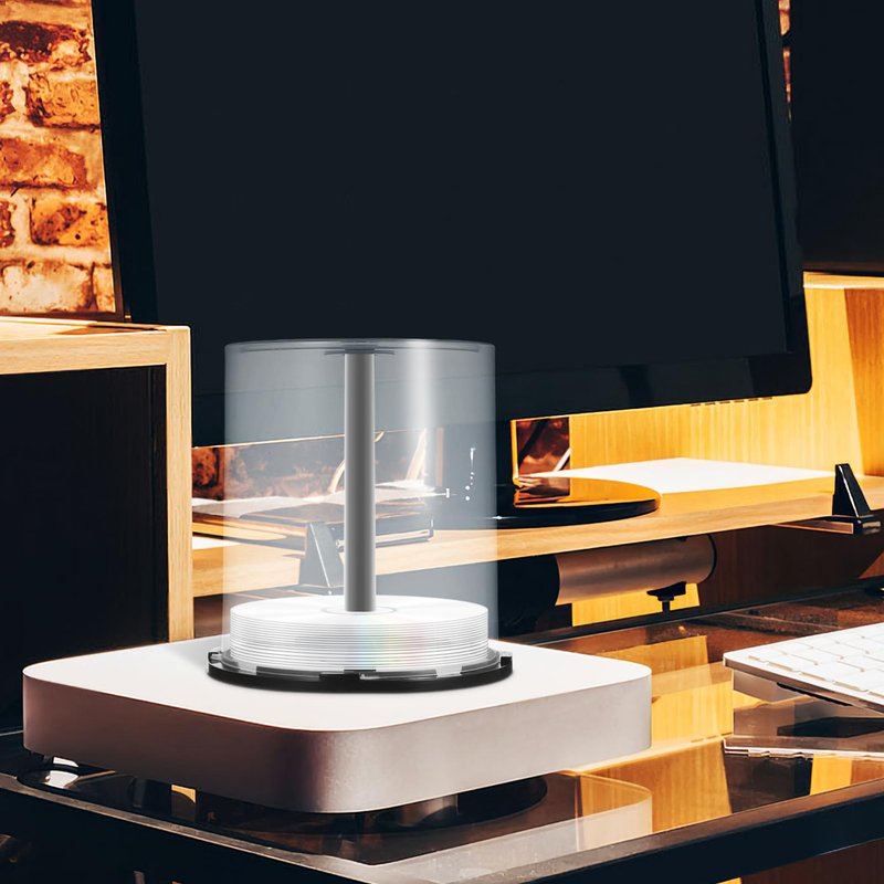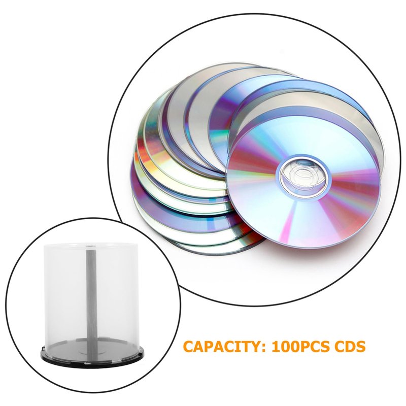 Homoyoyo 2Pcs Empty CD DVD Cake Box:CD Cake Spindle Plastic CD Storage Box Case 100 Discs DVD Storage for Home Office Easy to Open Clear with Black Base PP Travel