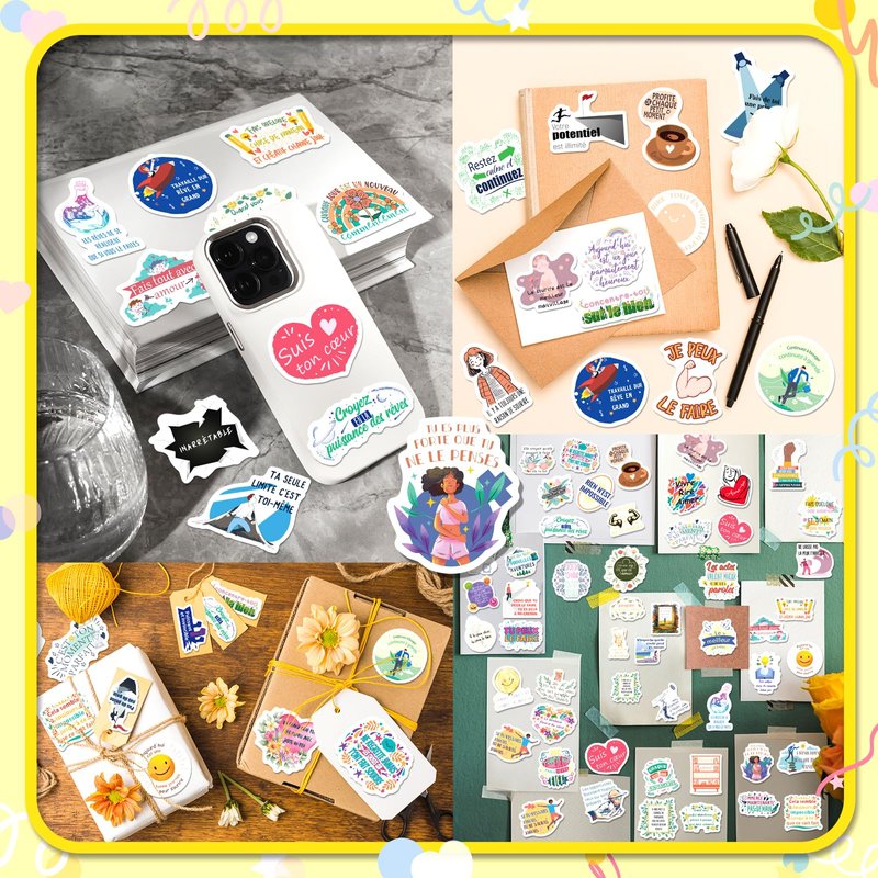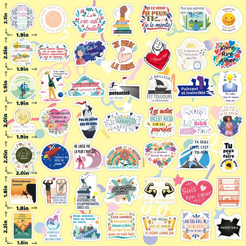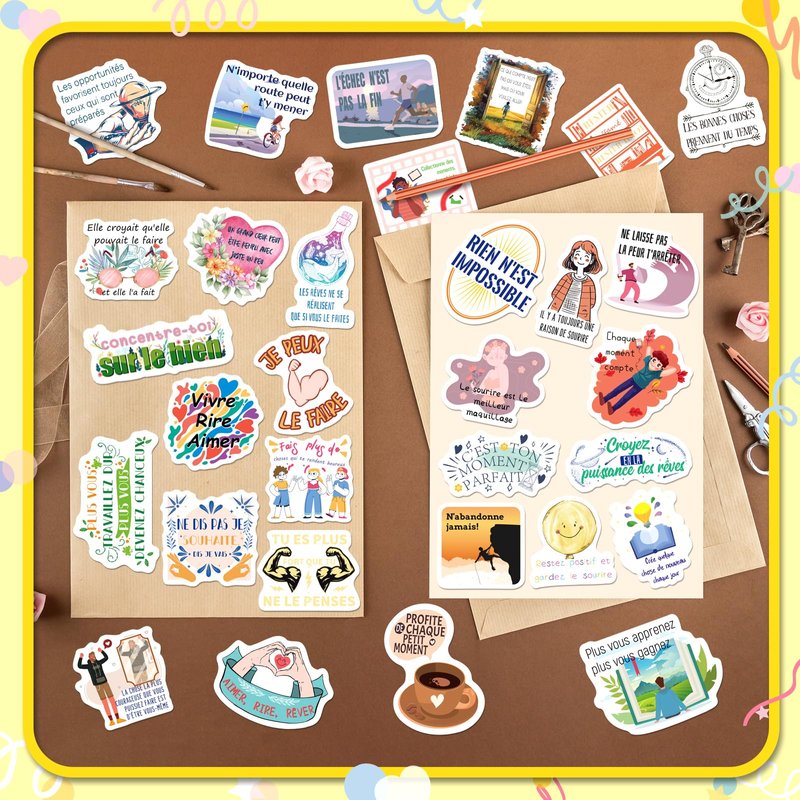 - These french stickers are perfect for journaling, planner decoration, and adding motivation to your daily life. With 100 different designs, each vinyl sticker comes with a positive quote in french to uplift and inspire