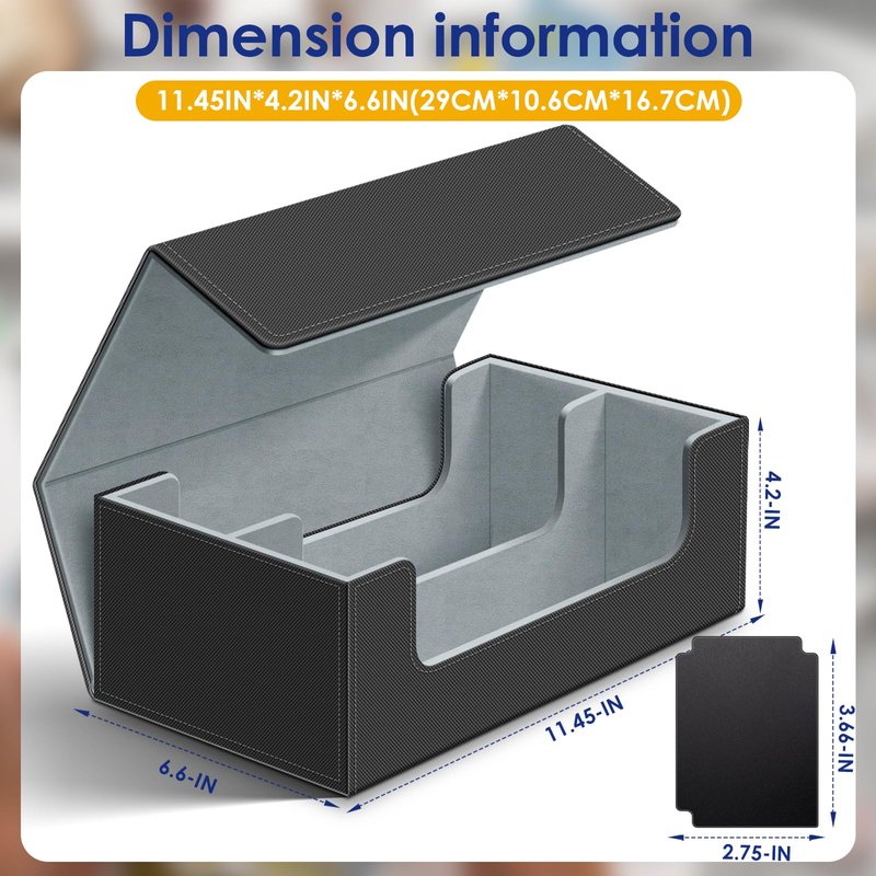 - Holds 1200+ Sleeved Cards: the size of our deck card case is 11.45x7x4.2 inches, it's large enough to store 1200+ standard size trading game cards easily. Does NOT fit Toploaders sleeves. SURPRISE GIFT!!! Comes with 4 card dividers!