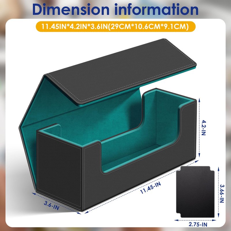 - Holds 600+ Sleeved Cards: the size of our deck card case is 11.45x4.2x3.6 inches, it's large enough to store 600+ standard size trading game cards easily. Do NOT fit top loaders sleeves. SURPRISE GIFT!!! Comes with 2 card dividers!