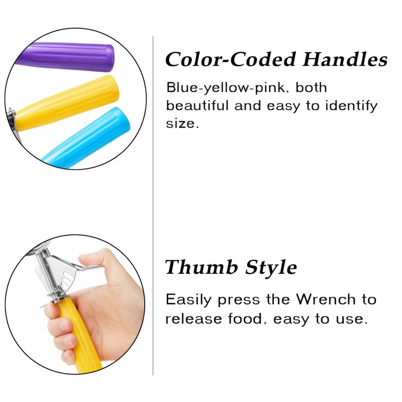 Portion Scoop set, Disher Scoop, Ice Cream Scooper, for Cookie Dough, Cupcakes, Muffins, Ice Cream, Meatballs, Melon.